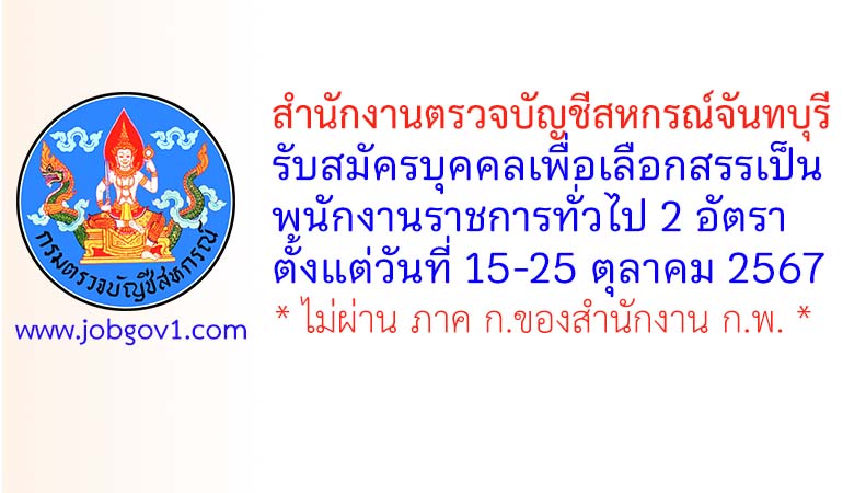 สำนักงานตรวจบัญชีสหกรณ์จันทบุรี รับสมัครบุคคลเพื่อเลือกสรรเป็นพนักงานราชการทั่วไป 2 อัตรา ตั้งแต่วันที่ 15-25 ตุลาคม 2567
