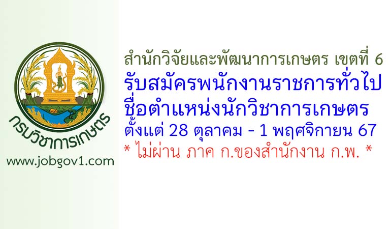 สำนักวิจัยและพัฒนาการเกษตร เขตที่ 6 รับสมัครพนักงานราชการทั่วไป ตำแหน่งนักวิชาการเกษตร ตั้งแต่ 28 ตุลาคม – 1 พฤศจิกายน 2567