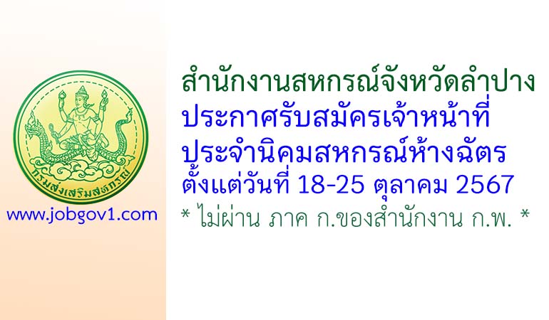 สำนักงานสหกรณ์จังหวัดลำปาง รับสมัครเจ้าหน้าที่ประจำนิคมสหกรณ์ห้างฉัตร ตั้งแต่วันที่ 18-25 ตุลาคม 2567
