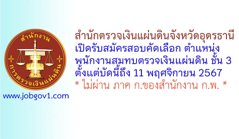 สำนักตรวจเงินแผ่นดินจังหวัดอุดรธานี รับสมัครพนักงานสมทบตรวจเงินแผ่นดิน ชั้น 3 ตั้งแต่บัดนี้ถึง 11 พฤศจิกายน 2567