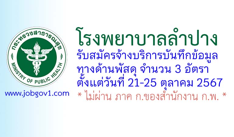โรงพยาบาลลำปาง รับสมัครจ้างบริการบันทึกข้อมูลทางด้านพัสดุ 3 อัตรา ตั้งแต่วันที่ 21-25 ตุลาคม 2567