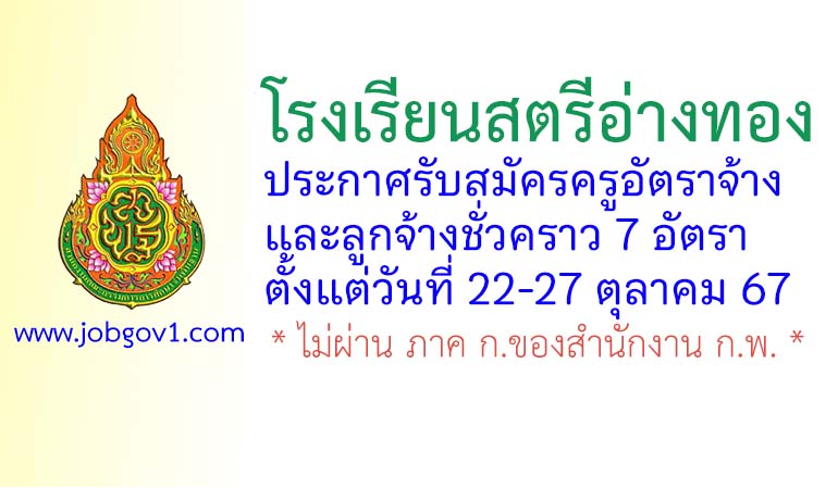โรงเรียนสตรีอ่างทอง รับสมัครครูอัตราจ้าง และลูกจ้างชั่วคราว 7 อัตรา ตั้งแต่วันที่ 22-27 ตุลาคม 2567