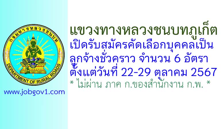 แขวงทางหลวงชนบทภูเก็ต รับสมัครคัดเลือกบุคคลเป็นลูกจ้างชั่วคราว 6 อัตรา ตั้งแต่วันที่ 22-29 ตุลาคม 2567