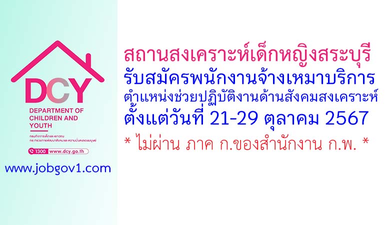สถานสงเคราะห์เด็กหญิงสระบุรี รับสมัครพนักงานจ้างเหมาบริการ ตำแหน่งช่วยปฏิบัติงานด้านสังคมสงเคราะห์ ตั้งแต่วันที่ 21-29 ตุลาคม 2567