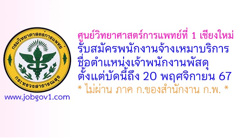 ศูนย์วิทยาศาสตร์การแพทย์ที่ 1 เชียงใหม่ รับสมัครพนักงานจ้างเหมาบริการ ตำแหน่งเจ้าพนักงานพัสดุ ตั้งแต่บัดนี้ถึง 20 พฤศจิกายน 2567