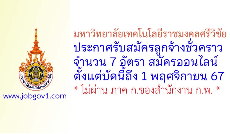 มหาวิทยาลัยเทคโนโลยีราชมงคลศรีวิชัย รับสมัครบุคคลเพื่อเลือกสรรเข้าเป็นลูกจ้างชั่วคราว 7 อัตรา ตั้งแต่บัดนี้ถึง 1 พฤศจิกายน 2567