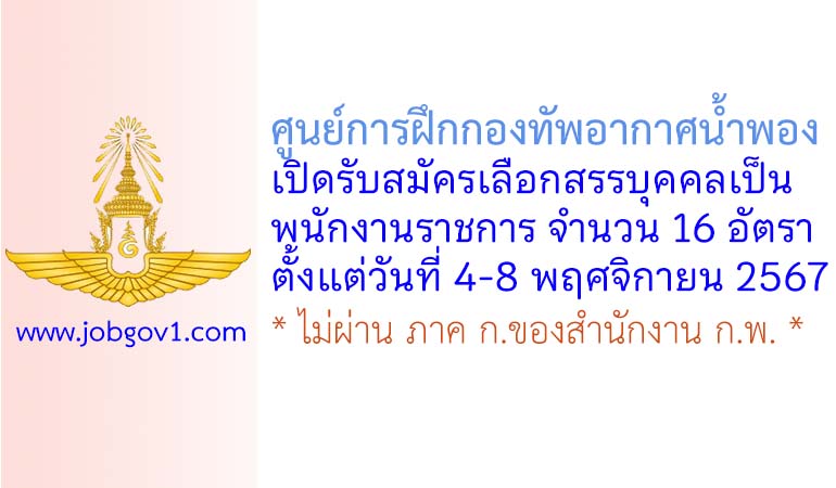 ศูนย์การฝึกกองทัพอากาศน้ำพอง รับสมัครเลือกสรรบุคคลเป็นพนักงานราชการ 16 อัตรา ตั้งแต่วันที่ 4-8 พฤศจิกายน 2567