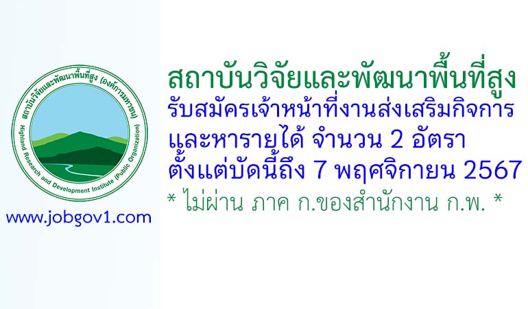 สถาบันวิจัยและพัฒนาพื้นที่สูง รับสมัครเจ้าหน้าที่งานส่งเสริมกิจการและหารายได้ 2 อัตรา ตั้งแต่บัดนี้ถึง 7 พฤศจิกายน 2567