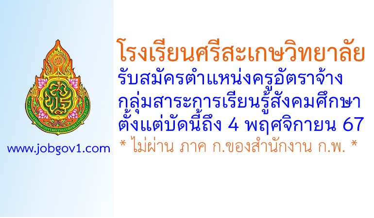โรงเรียนศรีสะเกษวิทยาลัย รับสมัครครูอัตราจ้าง กลุ่มสาระการเรียนรู้สังคมศึกษา ตั้งแต่บัดนี้ถึง 4 พฤศจิกายน 2567