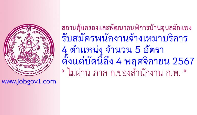 สถานคุ้มครองและพัฒนาคนพิการบ้านอุบลฮักแพง รับสมัครพนักงานจ้างเหมาบริการ 5 อัตรา ตั้งแต่บัดนี้ถึง 4 พฤศจิกายน 2567