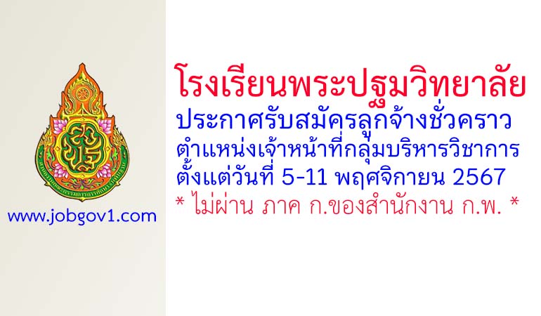 โรงเรียนพระปฐมวิทยาลัย รับสมัครลูกจ้างชั่วคราว ตำแหน่งเจ้าหน้าที่กลุ่มบริหารวิชาการ ตั้งแต่วันที่ 5-11 พฤศจิกายน 2567