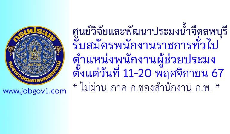 ศูนย์วิจัยและพัฒนาประมงน้ำจืดลพบุรี รับสมัครพนักงานราชการทั่วไป ตำแหน่งพนักงานผู้ช่วยประมง ตั้งแต่วันที่ 11-20 พฤศจิกายน 2567