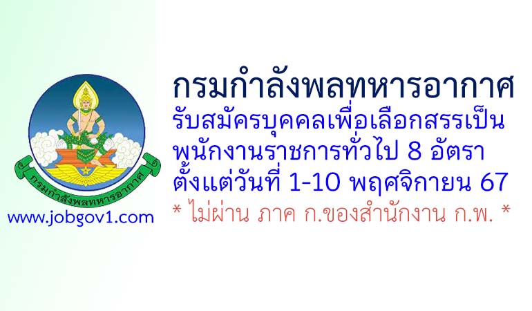 กรมกำลังพลทหารอากาศ รับสมัครบุคคลเพื่อเลือกสรรเป็นพนักงานราชการทั่วไป 8 อัตรา ตั้งแต่วันที่ 1-10 พฤศจิกายน 2567