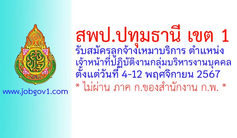 สพป.ปทุมธานี เขต 1 รับสมัครลูกจ้างเหมาบริการ ตำแหน่งเจ้าหน้าที่ปฏิบัติงานกลุ่มบริหารงานบุคคล ตั้งแต่วันที่ 4-12 พฤศจิกายน 2567