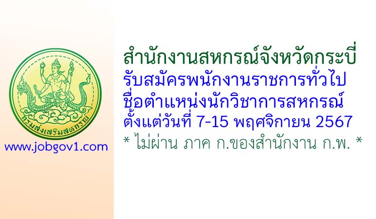 สำนักงานสหกรณ์จังหวัดกระบี่ รับสมัครพนักงานราชการทั่วไป ตำแหน่งนักวิชาการสหกรณ์ ตั้งแต่วันที่ 7-15 พฤศจิกายน 2567