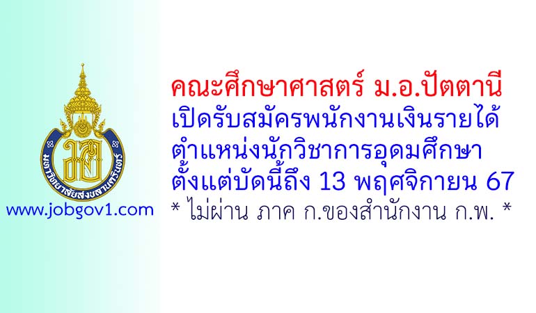 คณะศึกษาศาสตร์ ม.อ.ปัตตานี รับสมัครพนักงานเงินรายได้ ตำแหน่งนักวิชาการอุดมศึกษา ตั้งแต่บัดนี้ถึง 13 พฤศจิกายน 2567