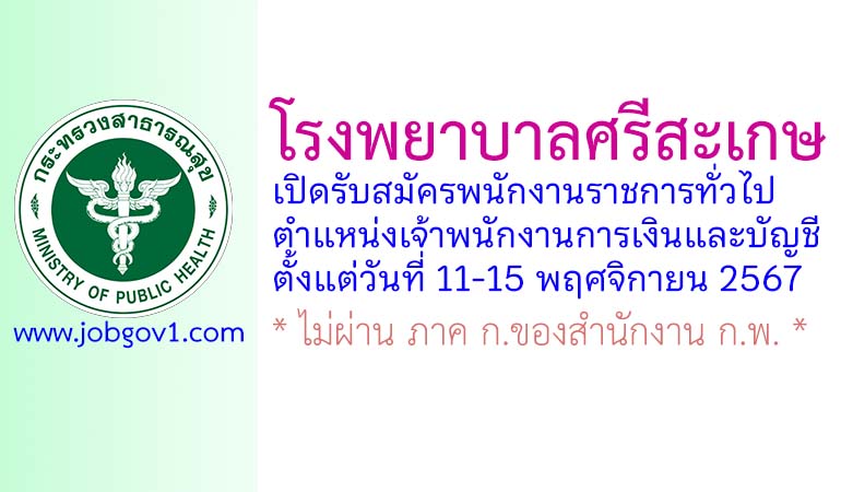 โรงพยาบาลศรีสะเกษ รับสมัครพนักงานราชการทั่วไป ตำแหน่งเจ้าพนักงานการเงินและบัญชี ตั้งแต่วันที่ 11-15 พฤศจิกายน 2567