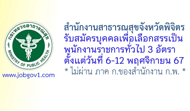 สำนักงานสาธารณสุขจังหวัดพิจิตร รับสมัครบุคคลเพื่อเลือกสรรเป็นพนักงานราชการทั่วไป 3 อัตรา ตั้งแต่วันที่ 6-12 พฤศจิกายน 2567