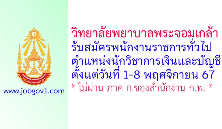วิทยาลัยพยาบาลพระจอมเกล้า รับสมัครพนักงานราชการทั่วไป ตำแหน่งนักวิชาการเงินและบัญชี ตั้งแต่วันที่ 1-8 พฤศจิกายน 2567