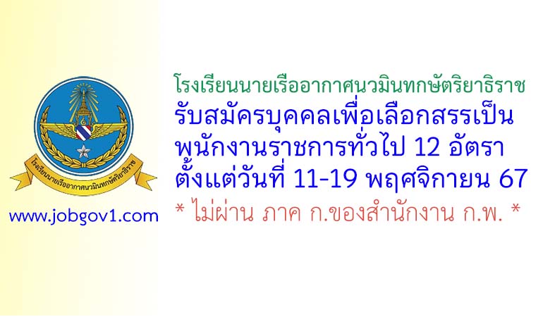 โรงเรียนนายเรืออากาศนวมินทกษัตริยาธิราช รับสมัครบุคคลเพื่อเลือกสรรเป็นพนักงานราชการทั่วไป 12 อัตรา ตั้งแต่วันที่ 11-19 พฤศจิกายน 2567
