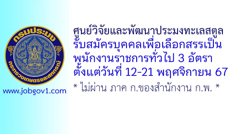 ศูนย์วิจัยและพัฒนาประมงทะเลสตูล รับสมัครบุคคลเพื่อเลือกสรรเป็นพนักงานราชการทั่วไป 3 อัตรา ตั้งแต่วันที่ 12-21 พฤศจิกายน 2567