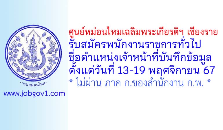 ศูนย์หม่อนไหมเฉลิมพระเกียรติฯ เชียงราย รับสมัครพนักงานราชการทั่วไป ตำแหน่งเจ้าหน้าที่บันทึกข้อมูล ตั้งแต่วันที่ 13-19 พฤศจิกายน 2567