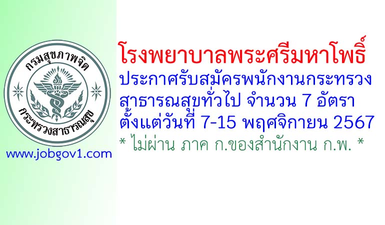 โรงพยาบาลพระศรีมหาโพธิ์ รับสมัครพนักงานกระทรวงสาธารณสุขทั่วไป 7 อัตรา ตั้งแต่วันที่ 7-15 พฤศจิกายน 2567