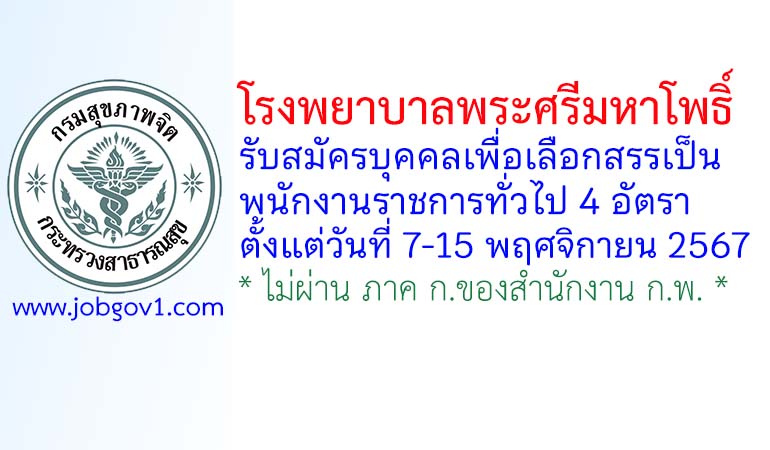 โรงพยาบาลพระศรีมหาโพธิ์ รับสมัครบุคคลเพื่อเลือกสรรเป็นพนักงานราชการทั่วไป 4 อัตรา ตั้งแต่วันที่ 7-15 พฤศจิกายน 2567