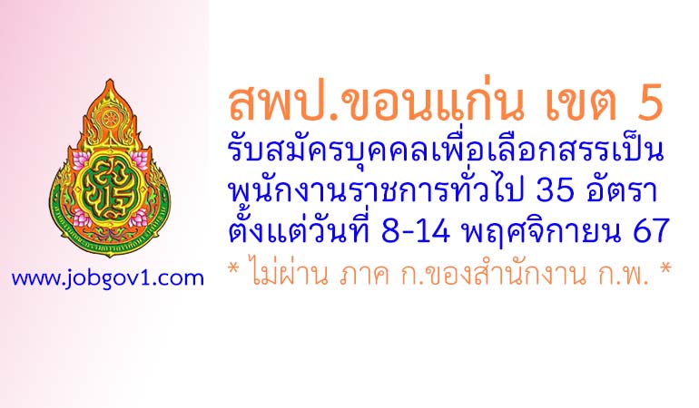 สพป.ขอนแก่น เขต 5 รับสมัครบุคคลเพื่อเลือกสรรเป็นพนักงานราชการทั่วไป 35 อัตรา ตั้งแต่วันที่ 8-14 พฤศจิกายน 2567
