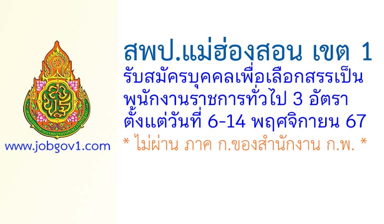สพป.แม่ฮ่องสอน เขต 1 รับสมัครบุคคลเพื่อเลือกสรรเป็นพนักงานราชการทั่วไป 3 อัตรา ตั้งแต่วันที่ 6-14 พฤศจิกายน 2567