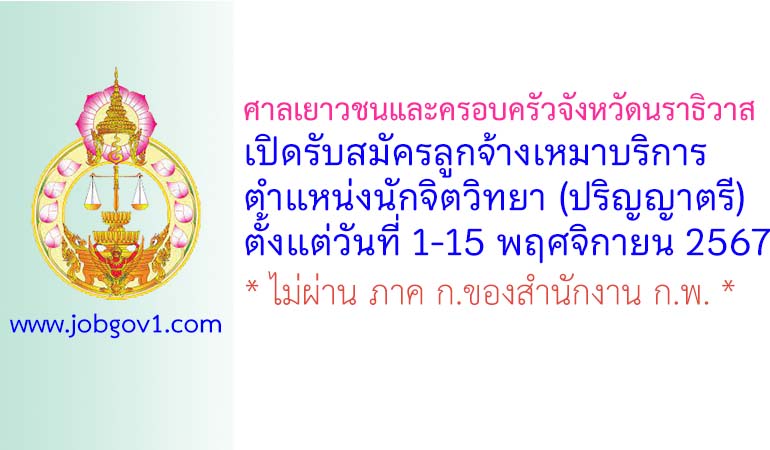 ศาลเยาวชนและครอบครัวจังหวัดนราธิวาส รับสมัครลูกจ้างเหมาบริการ ตำแหน่งนักจิตวิทยา ตั้งแต่วันที่ 1-15 พฤศจิกายน 2567