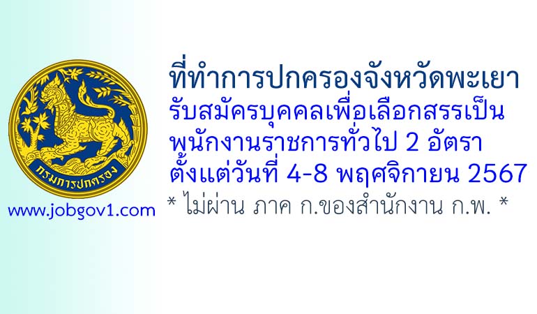 ที่ทำการปกครองจังหวัดพะเยา รับสมัครบุคคลเพื่อเลือกสรรเป็นพนักงานราชการทั่วไป 2 อัตรา ตั้งแต่วันที่ 4-8 พฤศจิกายน 2567