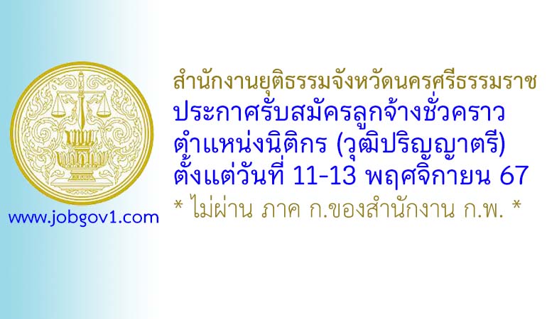 สำนักงานยุติธรรมจังหวัดนครศรีธรรมราช รับสมัครลูกจ้างชั่วคราว ตำแหน่งนิติกร ตั้งแต่วันที่ 11-13 พฤศจิกายน 2567