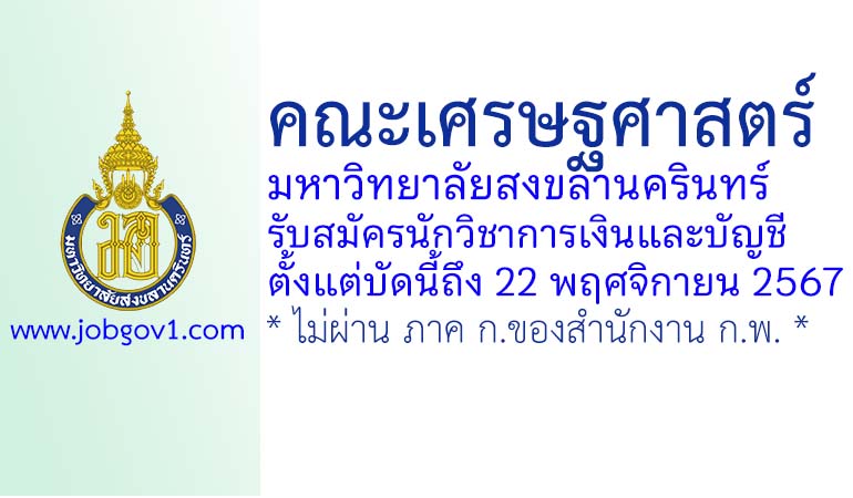 คณะเศรษฐศาสตร์ มหาวิทยาลัยสงขลานครินทร์ เรื่อง รับสมัครนักวิชาการเงินและบัญชี ตั้งแต่บัดนี้ถึง 22 พฤศจิกายน 2567