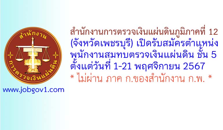 สำนักงานการตรวจเงินแผ่นดินภูมิภาคที่ 12 (จังหวัดเพชรบุรี) รับสมัครตำแหน่งพนักงานสมทบตรวจเงินแผ่นดิน ชั้น 5 ตั้งแต่วันที่ 1-21 พฤศจิกายน 2567