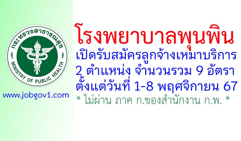 โรงพยาบาลพุนพิน รับสมัครลูกจ้างเหมาบริการ 9 อัตรา ตั้งแต่วันที่ 1-8 พฤศจิกายน 2567