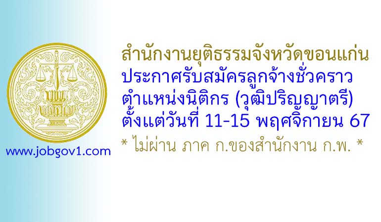 สำนักงานยุติธรรมจังหวัดขอนแก่น รับสมัครลูกจ้างชั่วคราว ตำแหน่งนิติกร (วุฒิปริญญาตรี) ตั้งแต่วันที่ 11-15 พฤศจิกายน 2567