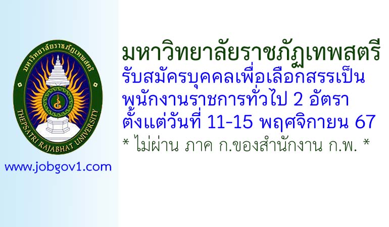 มหาวิทยาลัยราชภัฏเทพสตรี รับสมัครบุคคลเพื่อเลือกสรรเป็นพนักงานราชการทั่วไป 2 อัตรา ตั้งแต่วันที่ 11-15 พฤศจิกายน 2567