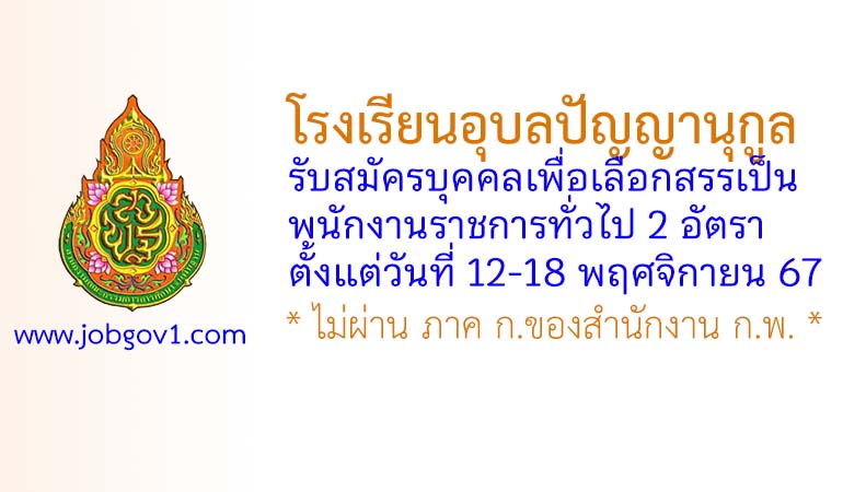โรงเรียนอุบลปัญญานุกูล รับสมัครบุคคลเพื่อเลือกสรรเป็นพนักงานราชการทั่วไป 2 อัตรา ตั้งแต่วันที่ 12-18 พฤศจิกายน 2567