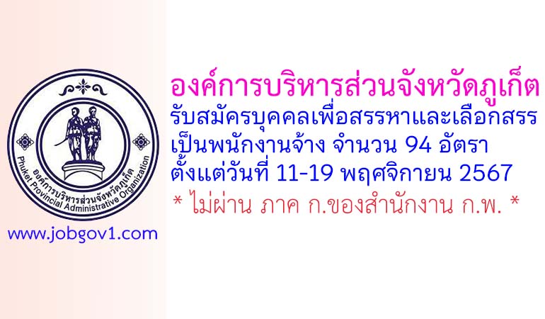 องค์การบริหารส่วนจังหวัดภูเก็ต รับสมัครบุคคลเพื่อสรรหาและเลือกสรรเป็นพนักงานจ้าง 94 อัตรา ตั้งแต่วันที่ 11-19 พฤศจิกายน 2567