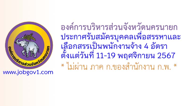 องค์การบริหารส่วนจังหวัดนครนายก รับสมัครบุคคลเพื่อสรรหาและเลือกสรรเป็นพนักงานจ้าง 4 อัตรา ตั้งแต่วันที่ 11-19 พฤศจิกายน 2567