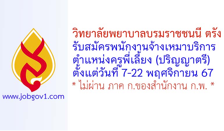 วิทยาลัยพยาบาลบรมราชชนนี ตรัง รับสมัครพนักงานจ้างเหมาบริการ ตำแหน่งครูพี่เลี้ยง ตั้งแต่วันที่ 7-22 พฤศจิกายน 2567