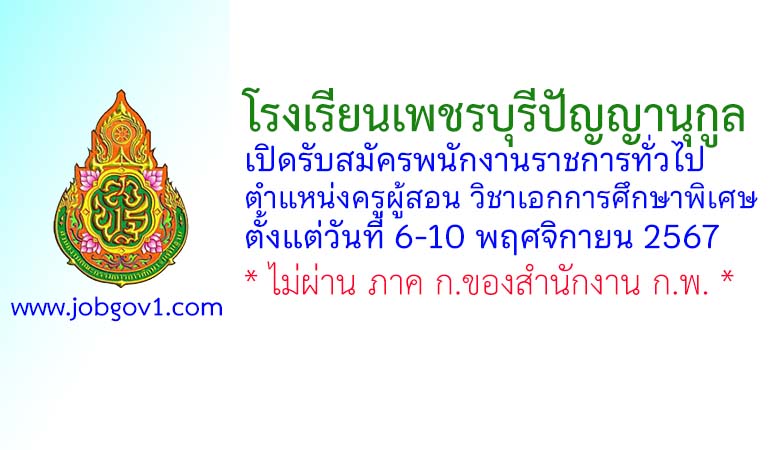โรงเรียนเพชรบุรีปัญญานุกูล รับสมัครพนักงานราชการทั่วไป ตำแหน่งครูผู้สอน วิชาเอกการศึกษาพิเศษ ตั้งแต่วันที่ 6-10 พฤศจิกายน 2567