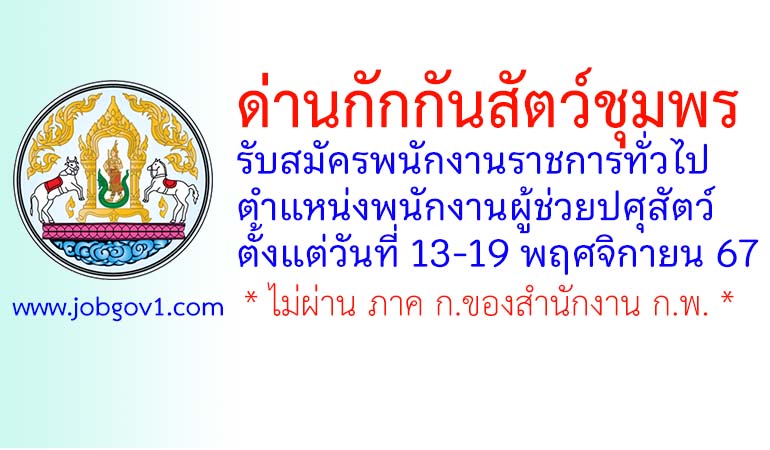 ด่านกักกันสัตว์ชุมพร รับสมัครพนักงานราชการทั่วไป ตำแหน่งพนักงานผู้ช่วยปศุสัตว์ ตั้งแต่วันที่ 13-19 พฤศจิกายน 2567