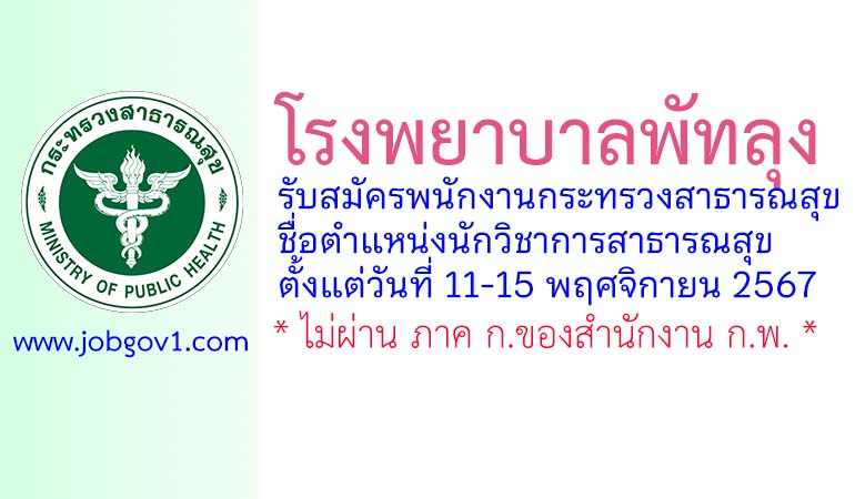 โรงพยาบาลพัทลุง รับสมัครพนักงานกระทรวงสาธารณสุขทั่วไป ตำแหน่งนักวิชาการสาธารณสุข ตั้งแต่วันที่ 11-15 พฤศจิกายน 2567