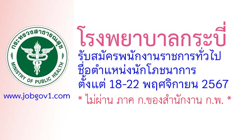 โรงพยาบาลกระบี่ รับสมัครพนักงานราชการทั่วไป ตำแหน่งนักโภชนาการ ตั้งแต่วันที่ 18-22 พฤศจิกายน 2567