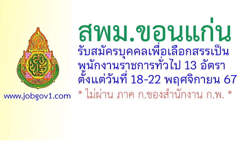 สพม.ขอนแก่น รับสมัครบุคคลเพื่อเลือกสรรเป็นพนักงานราชการทั่วไป 13 อัตรา ตั้งแต่วันที่ 18-22 พฤศจิกายน 2567