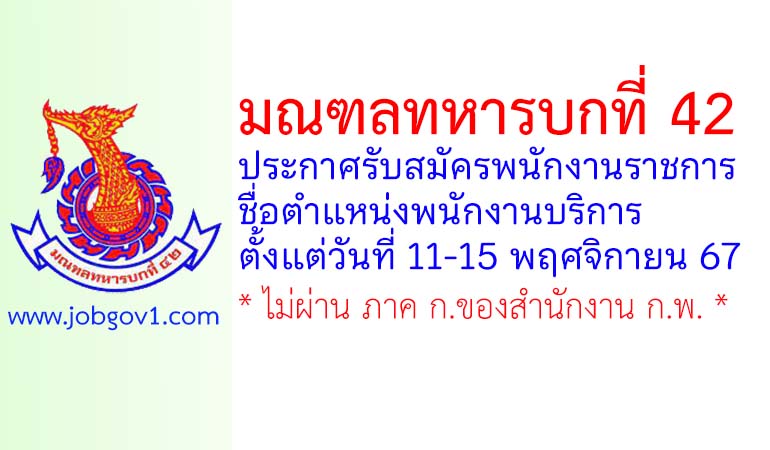 มณฑลทหารบกที่ 42 รับสมัครพนักงานราชการ ตำแหน่งพนักงานบริการ ตั้งแต่วันที่ 11-15 พฤศจิกายน 2567