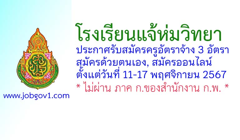 โรงเรียนแจ้ห่มวิทยา รับสมัครครูอัตราจ้าง 3 อัตรา ตั้งแต่วันที่ 11-17 พฤศจิกายน 2567