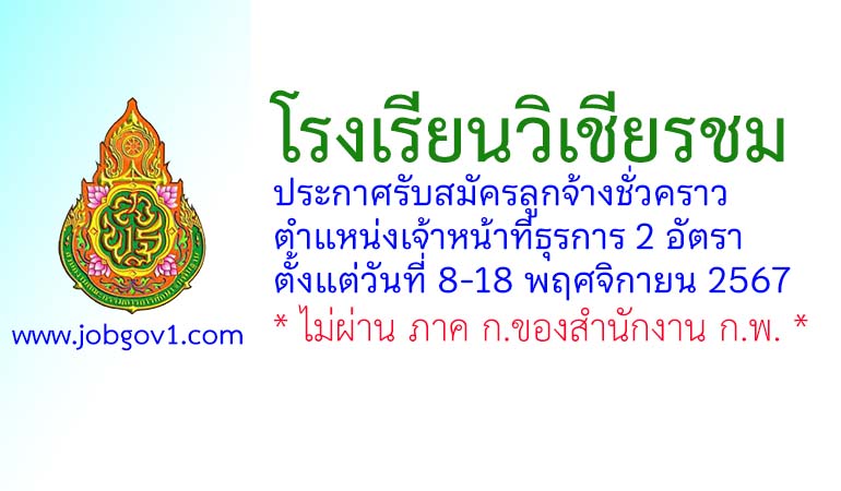 โรงเรียนวิเชียรชม รับสมัครลูกจ้างชั่วคราว ตำแหน่งเจ้าหน้าที่ธุรการ 2 อัตรา ตั้งแต่วันที่ 8-18 พฤศจิกายน 2567